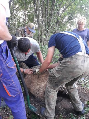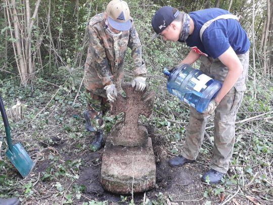 Metr po metrze wyrywamy z tych zarośli pamięć o przeszłości. Część pomników skrywa się pod warstwą ziemi i tylko przypadki sprawiają, że natrafiamy na nie i możemy je odkopać. Oprócz ogromnego upału dokuczają nam owady a niepokój wzbudziło pojawienie się w pobliżu naszego busa kilku szerszeni.