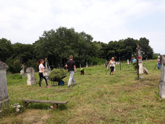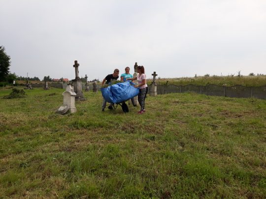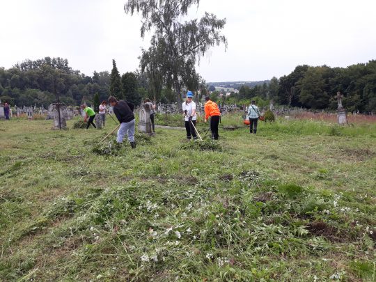 Już czwarty rok z rzędu pracujemy też na cmentarzu w Hodowicy koło Lwowa. Gdy podjeżdżamy do cmentarnej bramy zza ogrodzenia znowu wyłania się łąka i gdzieniegdzie „wołające” krzyże. Minął tylko rok a nagrobki zgubiły się w łanach traw. Mimo upału uruchamiamy kosy, do roboty ruszają grabie, widły, taczka i nieodzowny sierp. Smuci widok zaniedbanych mogił polskich, a i miejscowi mało dbają o własne mogiły.