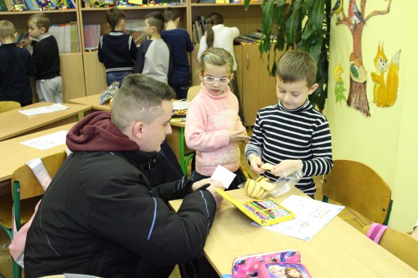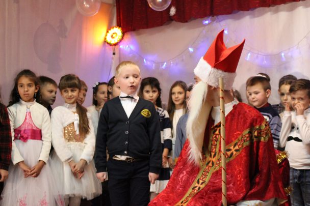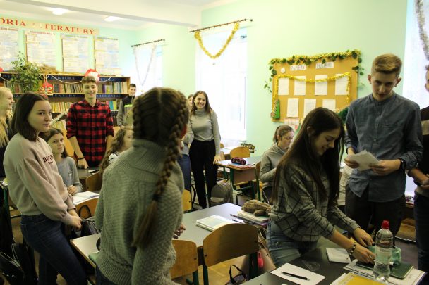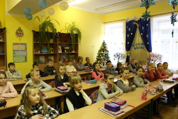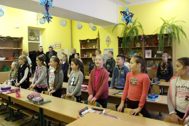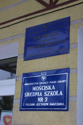 Po przekroczeniu granicy w pierwszej kolejności udaliśmy się do Mościsk, które są położone zaledwie 18 kilometrów za granicą. Odwiedziliśmy jedną z największych polskich szkół na Ukrainie, Mościckiej szkoły nr 3 im. Jadwigi Śląskiej. Byliśmy zaskoczeni poziomem polskiego języka jakim posługują się uczniowie, świadczy on o tym że w domu rozmawia się po polsku. Równie zaskakujący był porządek, grzeczność i dyscyplina wśród uczniów w szkole, zarówno w trakcie przerwy i lekcji. Zwiedziliśmy całą szkołę, każdą klasę, gdzie dzieci demonstrowały nam polskie pieśni i kolędy.