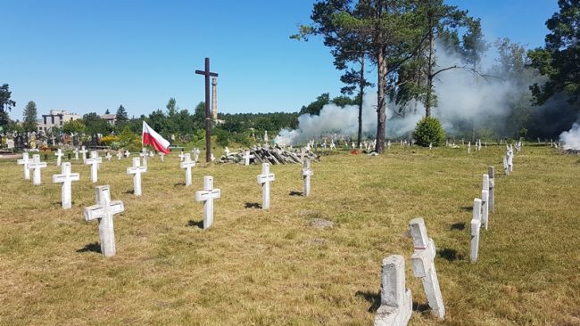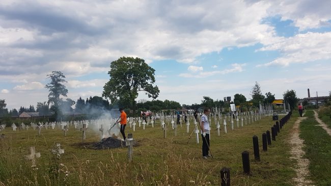 Podczas wykonywanych prac wolontariusze wykosili trawę, wybiałkowali krzyże w głównej części żołnierskiej kwatery, zawiesili biało- czerwone szarfy na krzyżach polskich bohaterów, a co najważniejsze uczcili pomięć bohaterów uroczystością podczas której wybrzmiały słowa Mazurka Dąbrowskiego oraz Roty.