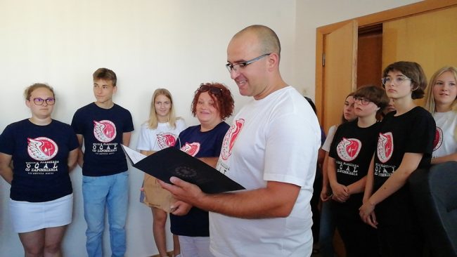 Podczas pobytu w Berdyczowie wolontariusze udali się do Urzędu Miasta Berdyczów na spotkanie z Panem Wasylem Mazurem Merem Berdyczowa. Pan Marcin Antosik Radny Gminy Nowa Ruda na ręce Mera Berdyczowa przekazał podziękowania od Wójta Gminy Nowa Ruda, za opiekę roztaczaną nad wolontariuszami oraz za współpracę między samorządami. Władze Berdyczowa przekazały podziękowanie dla Pani Adrianny Mierzejewskiej Wójta Gminy Nowa Ruda za współpracę oraz udzielaną pomoc i wsparcie dla ziemi żytomierskiej. W imieniu społeczności Jugowa podziękowanie za wspieranie rodaków na Kresach Wschodnich, od ks. Krzysztofa Kaczmarka proboszcza Jugowa oraz wolontariuszy akcji „Mogiłę pradziada ocal od zapomnienia”, przekazano na ręce Pana dr Jerzego Sokalskiego Członka Zarządu Głównego Związku Polaków Ukrainy.