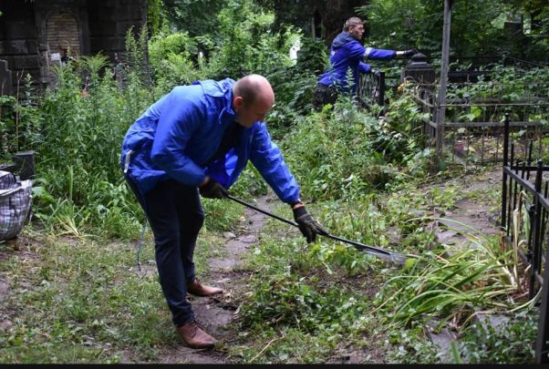 Pan Ambasador zaoferował swoją pomoc w pracach porządkowych na terenie Cmentarza Bajkowa i zgodnie z obietnicą stawił się do pracy w poniedziałek 15 lipca. Pan Michał Giergoń okazał się niezwykle ciepłym i serdecznym człowiekiem. To była przyjemność pracować z nim. Jesteśmy dumni, że taki człowiek, jak Pan Giergoń reprezentuje nas na terenie Ukrainy. Pan Michał Giergoń przekazał nam również słowa wsparcia od Ambasadora Polski na Ukrainie Pana Bartosza Cichockiego. Oprócz Pana Ambasadora w pracach przy porządkowaniu polskiej części nekropolii wspierali nas również mieszkańcy Kijowa. Wraz z całą rodziną, pomimo dużego deszczu, stawił się do pracy Gleb Bakaliński prezes organizacji „Białego Orła”. Wspierali go żona oraz dzieci. W ten dzień pracowała a nami również Adelina Kisielewska, księgowa parafii św. Mikołaja oraz Zlata i Tatiana Ramczukowy. Pozdrawiamy wszystkich serdecznie.