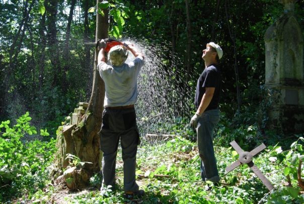 Ogromne drzewa, który wyrosły tutaj przez kilkadziesiąt lat, niszczyły polskie nagrobki i cały czas stanowiły zagrożenie dla kolejnych mogił. Udało nam się ponadto usunąć z terenu cmentarza kolejne śmieci, które zalegały w kilku miejscach. Teren ten uporządkowaliśmy najlepiej jak tylko potrafiliśmy, a ekipa która zajmuje się obecnie renowacją cmentarza doceniła nasze starania. Widzieli bowiem, jak nekropolia wyglądała jeszcze niedawno.