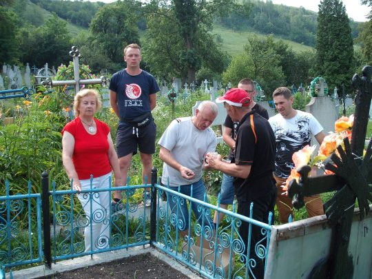 Wizyta w Pałahiczach była możliwa przede wszystkim dzięki pani Wirze Woroszczuk, mieszkance Iwano-Frankivska, która ma w tej niewielkiej wsi rodzinę. Na cmentarzu w Pałahiczach znajduje się zbiorowa mogiła Polaków, którzy padli ofiarą sąsiedzkich napaści. Dwukrotnie, w 1944 i 1945 roku doszło do podpalenia stodoły, w których zostali zamknięci nasi rodacy. Obecnie w miejscu złożenia ich ciał znajduje się metalowy krzyż z dwoma nazwiskami. Brakuje natomiast informacji o tragicznych wydarzeniach i nazwisk pozostałych ofiar.