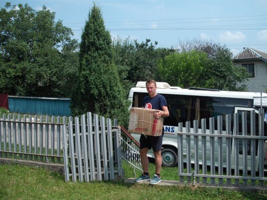 W Oknianach spotkaliśmy się ze starostą wsi Mirosławem Kraśniakiem oraz z mieszkańcami, którzy opiekują się zabytkowym drewnianym kościołem. Został on przetransportowany tutaj jeszcze w XIX wieku z Tłumacza. Dziś służy jako cerkiew grecko-katolicka. Dzięki zbiórce koordynowanej przez Janinę Ziobro, przekazaliśmy obecnym mieszkańcom Oknian dary.