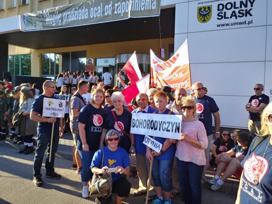Zbiórka wszystkich uczestników udających się na Kresy odbyła się przed Urzędem Marszałkowskim we Wrocławiu. Większość grup zaopatrzona była w tabliczki z nazwami miejscowości, w których porządkowano cmentarze. Naszej grupie, oprócz Bohorodyczyna, który porządkujemy co roku przypadł  tym razem również cmentarz w Otynii i tabliczki  z takimi napisami trzymał najmłodszy uczestnik naszej wyprawy.