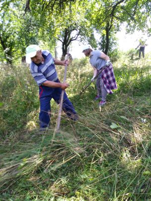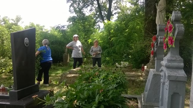 Dwa kolejne dni upływały na ciężkiej pracy polegającej na wykaszaniu chwastów kosami spalinowymi i zwykłymi kosami, grabieniu  trawy, oczyszczaniu grobów  z mchów i chwastów. Z zadowoleniem patrzyliśmy jak odsłania się coraz większa liczba  nagrobków. Przy porządkowaniu mogił pomagała kilku osobowa grupa miejscowych Ukraińców. W świąteczny sobotni dzień prace na cmentarzu zostały wstrzymane, a my wzięliśmy udział w nabożeństwie w cerkwi grecko-katolickiej. Wtedy też spotkaliśmy się z księdzem sprawującym posługę duszpasterską w Bohorodyczynie oraz dużą grupą mieszkańców wsi. Była więc okazja do wielu ciekawych rozmów dotyczących  powiązań rodzinnych, spraw bieżących, sytuacji na Ukrainie a także przedwojennych układów narodowościowych we wsi. Po południu odwiedziliśmy Kołomyję, pochodziliśmy po rynku, zrobiliśmy zakupy. Późnym popołudniem udaliśmy się do Tarnowicy Polnej, miejscowości znanej nam z wielu opowiadań starszych mieszkańców Bohorodyczyna jako  niegdyś enklawy polskości. Rozczarowała nas jednak ponownie jakość miejscowych dróg i opłakany stan starego, polskiego cmentarza.