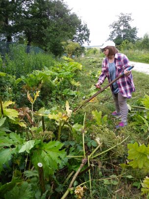 Do Bohorodyczyna dotarliśmy w środę przed południem. Po przywitaniu się z rodzinami, u których mieliśmy zakwaterowanie i krótkim odpoczynku udaliśmy się na miejscowy cmentarz, aby ocenić jakie prace należy wykonać w pierwszej kolejności. Przerażenie ogarnęło nas, gdy zobaczyliśmy, że rów i pobocze ciągnące się się wzdłuż  cmentarza porastają wybujałe liście barszczu Sosnkowskiego. Gdy oswoiliśmy się z widokiem, męska część naszej grupy chwyciła za zwykłe kosy i powoli zaczęła odsłaniać coraz większa  przestrzenie cmentarza W tym czasie pozostali  oczyszczali z chwastów zarośniętą Mogiłę Pomordowanych.