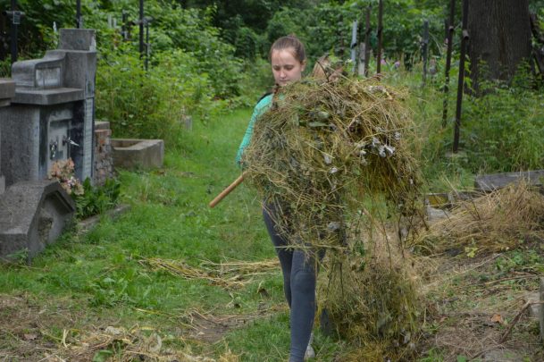 I jak co roku po przyjeździe na miejsce oniemieliśmy z wrażenia, kiedy zobaczyliśmy jak bardzo zarośnięte są cmentarze, na których pracowaliśmy przez ostatnie cztery lata. Nie zostało nam nic innego jak zakasać rękawy i wziąć się do roboty. Na szczęście pogoda nam sprzyjała, więc udało nam się dzięki dużemu zaangażowaniu wszystkich wolontariuszy uporządkować cmentarz w Zielonej i te części cmentarza w Pasiecznej i Nadwórnej, które ocaliliśmy w latach poprzednich. Dodatkowo uprzątnęliśmy nową część cmentarza w Nadwórnej ocalając od zapomnienia kolejne groby, co szczególnie ucieszyło naszych wolontariuszy. Co roku, kiedy odkrywamy lub odkopujemy nowe groby przeżywamy niesamowite chwile czytając inskrypcje na nagrobkach. Traktujemy to jako poznawanie historii kolejnego naszego rodaka, który żył na terenach Rzeczypospolitej.