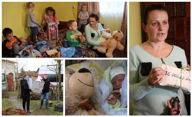 Tradycyjnie akcję rozwożenia darów dla Rodaków za wschodnią granicą rozpoczęliśmy od „zawsze wiernej” ziemi lwowskiej. Paczki trafiły do Sądowej Wiszni, Stojaniec i do Mościsk, miasta prezydenta Mościckiego gdzie Polacy stanowią aż 36 proc. mieszkańców. Mieszka tam również wielodzietna rodzina Barnusiów, gdy byliśmy w drodze na Kresy na świat przyszła najmłodsza dziesiąta pociecha rodziny – Boguś Barnuś.