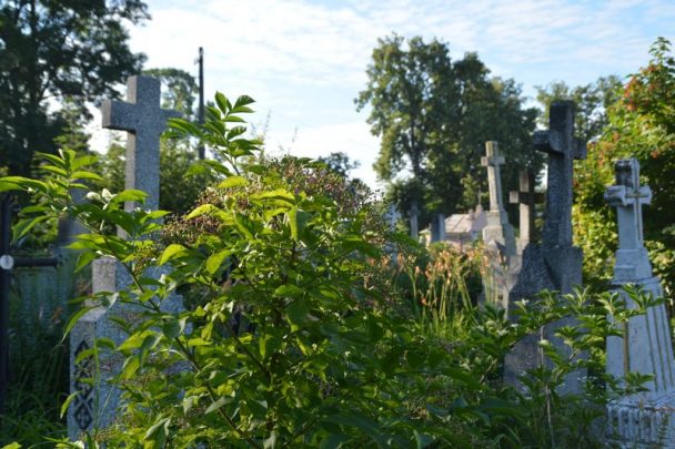 W kolejnych dniach porządkowaliśmy cmentarz polski w miejscowości oddalonej o 12 km od Podhajec – Białokrynicy. Do 1945 roku wioskę zamieszkiwało ok. 2000 Polaków, którzy zostali zmuszeni do jej opuszczenia. Dziś jedyne ślady polskości to cmentarz, który jest bardzo zaniedbany i zniszczony. Prace na cmentarzu w Białokrynicy polegały na wycinaniu krzewów, chaszczy, koszeniu traw, naprawie pomników, czyszczeniu i myciu ich oraz odnawianiu napisów na nagrobkach. Porządkowanie cmentarza w Białokrynicy było bardzo trudne i czasochłonne. Zarośla były wysokie, gęste, trudno dostępne, nie było widać pomników. Niestety nie udało nam się uporządkować całego cmentarza z powodu braku specjalistycznego sprzętu. Tak jak w Podhajcach na zakończenie naszego pobytu zapaliliśmy znicze i umieściliśmy na nagrobkach biało – czerwone wstęgi. Bardzo serdeczni byli dla nas niektórzy mieszkańcy wioski, udostępnili nam swoje narzędzia, a także pozwolili nam przechować u siebie nasz sprzęt.
