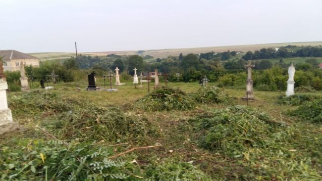 Prace porządkowe rozpoczęliśmy od cmentarza w Podhajcach. Mogiły naszych rodaków są tam położone w różnych częściach bardzo rozległego cmentarza. Niektóre nagrobki mają napisy w języku polskim , inne – jak dowiedzieliśmy się od „tubylców” – mimo, że są polskie opisane są w języku rosyjskim lub ukraińskim. Nagrobki są bardzo zniszczone i zaniedbane, ukryte wśród zarośli i chaszczy. Nie wszystkie można było zidentyfikować, czas zrobił swoje. Prace na tym cmentarzu prowadziliśmy przez trzy dni, a było to koszenie trawy, wycinanie krzewów i chaszczy, pielenie, czyszczenie i mycie pomników, odnawianie napisów, opryski chwastów i zarośli. Na koniec zapaliliśmy znicze i umieściliśmy na nagrobkach wstążki w narodowych barwach.