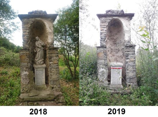 Niestety, po wykarczowaniu okolic kaplicy okazało się, że zniknęła figura Matki Bożej z grobu Justysi . Niestety, podobno to ostatnio plaga co najmniej w rejonie Tarnopola i Trembowli. Figura została umiejętnie usunięta z cokołu i edykuły, nie pozostawiając żadnych śladów niedawnej działalności. Rzeźba datowana na połowę XIX wieku była dobrej klasy i stanowiła jedną z ozdób cmentarza baworowskiego. Oczywiście w skali powiatu, tu musimy pamiętać o wytworach na Cmentarzu Mikulinieckim w Tarnopolu, czy województwa nie odznaczała się szczególnie wysoką wartością, lecz już w skali cmentarza tego można było ją uznać za ozdobę. Szczególnie warte jest podkreślenia, że znajdowała się w eksponowanym miejscu – koło kaplicy, gdzie ponadto zachowało się tylko kilka grobów na powierzchni. W każdym razie jest to ogromna strata. Szczególnie boli tutaj aspekt moralny – zabytek, figura Matki Bożej, grób i to jeszcze w dodatku dziecka…
