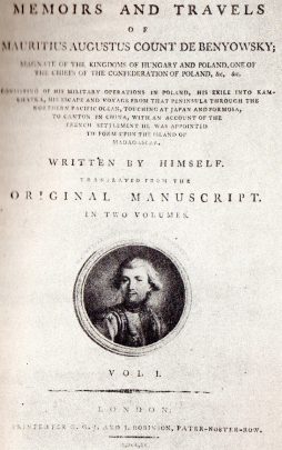 Strona tytułowa pamiętników Maurycego Beniowskiego.