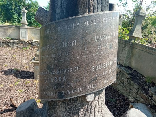 68. Grób rodzinny Pobóg Górskich Ś.P Seweryn Górski, żył lat 55, Maryan Górski, żył lat 27, Bolesław Górski, żył lat 85, Anna Żółkiewskich Górska, żyła lat 50. Proszą o westchnienie do Boga.
