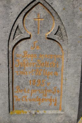 29. Tu w Bogu spoczywa Izydor Balicki (zm. 26.07.1895r) „Boże przyjmij Go do chwały swojej