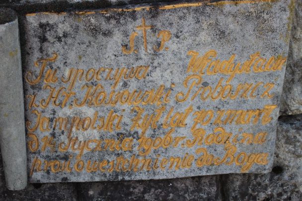 37. Tu spoczywa Władysław z hr. Kossowski Proboszcz Jampolski. Żył lat 70. Zmarł 14.01.1906r. Rodzina prosi o westchnienie do Boga