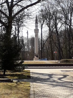 Minaret został postawiony przez generał Eduarda Totliebniena w 1880 roku. Ten element architektury muzułmańskiej tak spodobał się generałowi podczas wojny z Turcji 1877-1878, że postawił wybudować własny. Znajduje się tuż obok stacji kolejowej, ok. 2 km od centrum miasta.