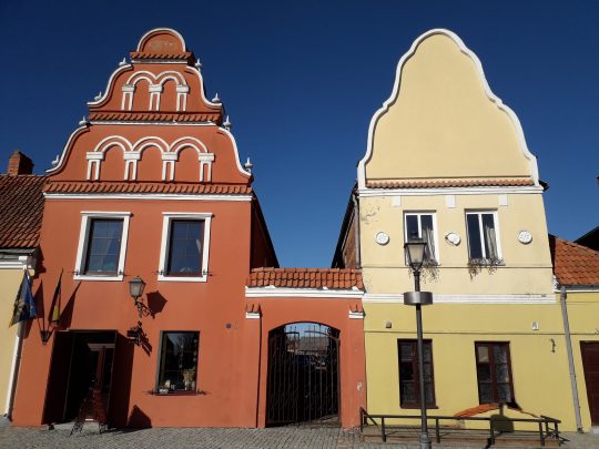 Rynek. Czerwony dom w głębi po prawej stronie to kamienica burmistrza Jerzego Andersena