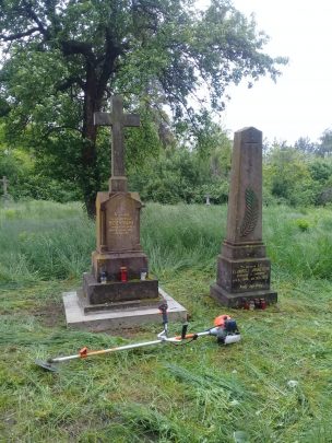 W tym roku z powodu pandemii nie mogliśmy pojechać na Ukrainę, żeby kontynuować prace na cmentarzach. Jednak nie musimy się martwić, że „nasz” cmentarz będzie zaniedbany. Wołodia, nieoceniony pomocnik, dba żeby nasza wcześniejsza praca nie poszła na marne. Kosi trawę, czyści pomniki, zrobił nawet wylewkę pod podniesiony pomnik na grobie księdza!