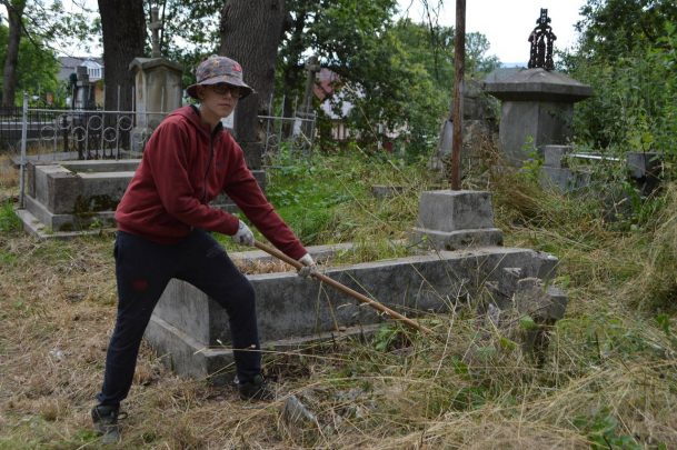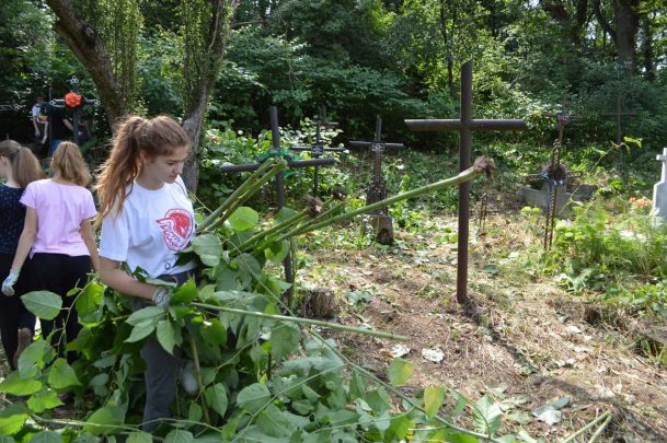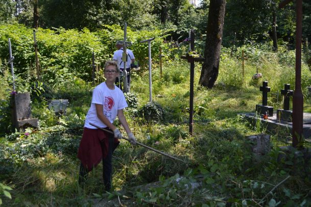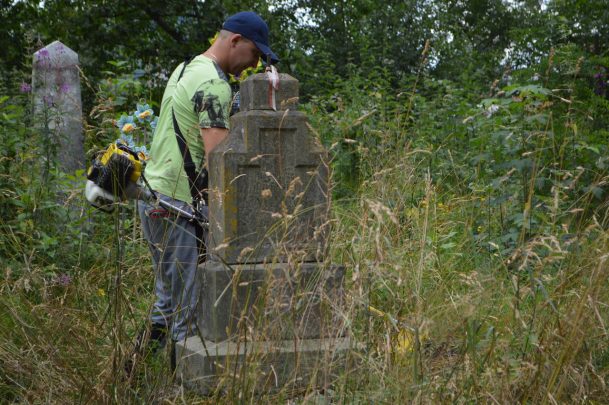 I jak co roku po przyjeździe na miejsce oniemieliśmy z wrażenia, kiedy zobaczyliśmy jak bardzo zarośnięte są cmentarze, na których pracowaliśmy przez ostatnie cztery lata. Nie zostało nam nic innego jak zakasać rękawy i wziąć się do roboty. Na szczęście pogoda nam sprzyjała, więc udało nam się dzięki dużemu zaangażowaniu wszystkich wolontariuszy uporządkować cmentarz w Zielonej i te części cmentarza w Pasiecznej i Nadwórnej, które ocaliliśmy w latach poprzednich. Dodatkowo uprzątnęliśmy nową część cmentarza w Nadwórnej ocalając od zapomnienia kolejne groby, co szczególnie ucieszyło naszych wolontariuszy. Co roku, kiedy odkrywamy lub odkopujemy nowe groby przeżywamy niesamowite chwile czytając inskrypcje na nagrobkach. Traktujemy to jako poznawanie historii kolejnego naszego rodaka, który żył na terenach Rzeczypospolitej.