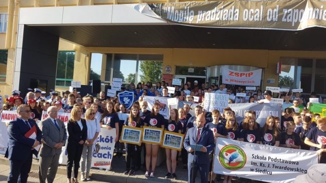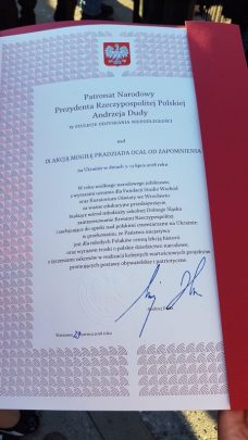 W uroczystościach uczestniczyli: pan Andrzej Dera Sekretarz stanu w Kancelarii prezydenta RP, pan Paweł Hraniak Wojewoda Dolnośląski, pan Tadeusz Samborski Członek Zarządu Województwa Dolnośląskiego, pan Roman Kowalczyk, Dolnośląski Kurator Oświaty oraz  płk Mieczysław Struś Komandor  Rajdu Katyńskiego. Podczas uroczystej odprawy inicjatorki akcji „Mogiłę pradziada ocal od zapomnienia”: pani Grażyna Orłowska- Sondej oraz Beata Pawłowicz odebrały Patronat Narodowy Prezydenta RP Andrzeja Dudy. Podczas IX edycji akcji wolontariusze uporządkują 145 zaniedbanych polskich cmentarzy.