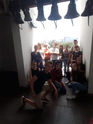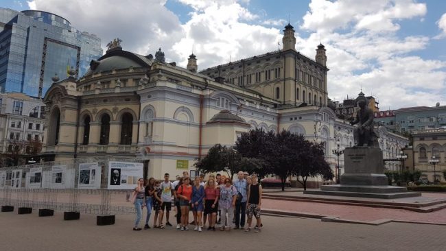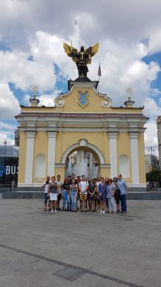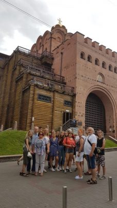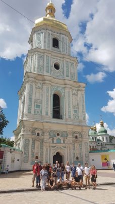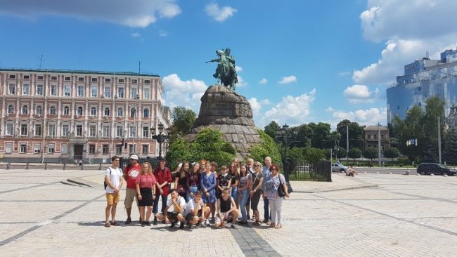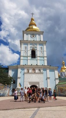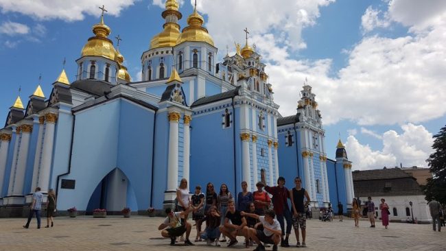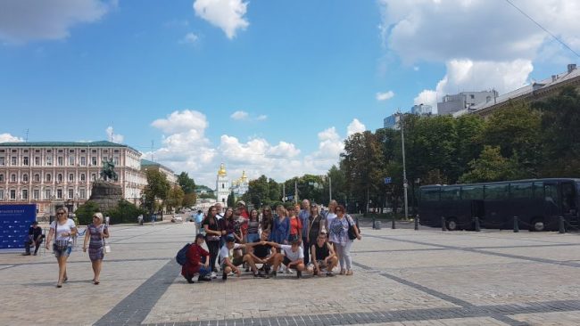 Dzień 8 lipca 2018 r. wolontariusze z akcji „Mogiłę pradziada ocal od zapomnienia” z Jugowa spędzili na zwiedzaniu stolicy i największego miasta Ukrainy, położonego nad rzeką Dniepr-  Kijowa. Młodzież, opiekunowie oraz dr Jurek Sokalski- Członek Zarządu Głównego i Prezydium Związku Polaków Ukrainy, dzięki uprzejmości pana Nikity Turika- studenta Uniwersytetu Jagielońskiego w Krakowie zwiedzili najważniejsze  miejsca miasta: Monaster Św. Michała Archanioła o złotych kopułach, Pomnik Bohdana Chmielnickiego, Majdan Niezależności, Złotą Bramę, główną aleję Kijowa – Chreszczatyk, Katedrę Św. Zofii oraz Bramę Lacką.