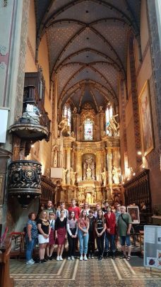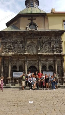 Kolejnym punktem zwiedzania Lwowa była Bazylika metropolitalna p.w. Wniebowzięcia Najświętszej Marii Panny. Powstanie, głównej świątyni Lwowskiej Archidiecezji Kościoła Rzymskokatolickiego na Ukrainie, przypada na XIV- XV w. Katedra utrzymana jest w stylu gotyckim  z dobudowaniami z okresu renesansu i baroku. Wolontariusze z Jugowa mieli zaszczyt uczestniczyć we mszy św. w Katedrze Lwowskiej. Następnie młodzież zobaczyła Kaplicę Męki Pańskiej, zbudowaną w końcu XVI w., jako kaplicę grobową rodziny Boimów oraz Pomnik Adama Mickiewicza, który odsłonięto 30 października 1904r. Ostatnim punktem zwiedzania Lwowa był Kościół świętych Apostołów Piotra i Pawła, zbudowany przez jezuitów w latach 1610- 1630.