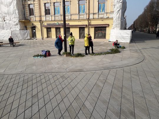 Poza przestrzenią kościelną trudno zauważyć, że zbliżają się jakiekolwiek święta. Jedyną rzeczą jest ustawiona pisanka. Ten przedmiot w przestrzeni miasta jest bardzo modny. Władze ustawią wielkie, kilkumetrowe pisanki w centrach miast – np. w Wilnie w pobliży kościoła Wszystkich Świętych czy Kownie na prospekcie Witolda.