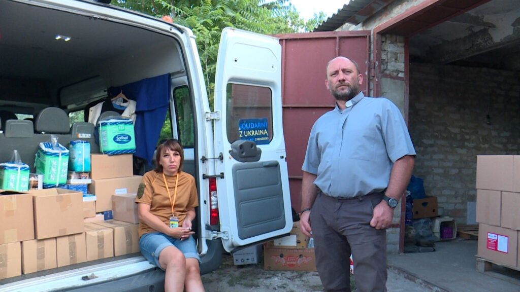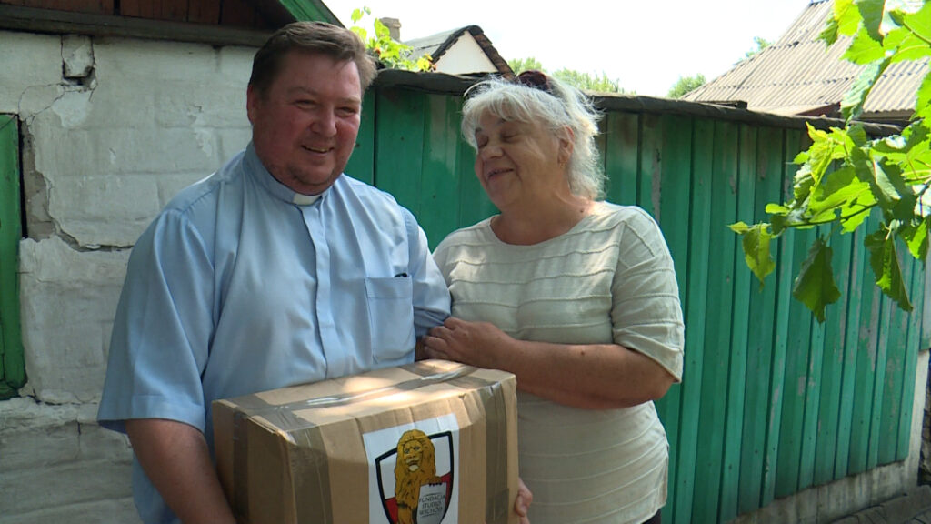 Mimo, że to już trzeci rok wojny, w Donbasie pracują polscy księża. Kościołem w Pokrowsku opiekuje się Wiktor Wąsowicz, a świątynią w Słowiańsku, od niedawna – Julian Chabiniak. Ich parafianie to nasi Rodacy, których przodkowie zostali wywiezieni w latach czterdziestych z zachodniej Ukrainy, do pracy w kopalniach. Mimo dramatycznej sytuacji w obu miastach i nakazu ewakuacji ludności cywilnej z Pokrowska, pozostało tu jeszcze sporo ludzi. Kapłani wspierają ich materialnie. Paczki żywnościowe z Polski są na wagę złota. Rozwożą je do miejsc niebezpiecznych, wszędzie, gdzie żyją jeszcze ludzie Obaj księża są kapelanami wojskowymi. Opiekują się również żołnierzami, często wyjeżdżają na linię frontu. Pomoc z Polski dociera tu coraz rzadziej, tym bardziej frontowi kapłani są wdzięczni ofiarodawcom z ojczyzny. W Donbasie byliśmy już trzeci raz podczas pełnoskalowej wojny. Tym razem udało się zawieźć ponad sto paczek, środki czystości i apteczki dla żołnierzy. Część darów przekazaliśmy mieszkańcom zrujnowanych przyfrontowych wsi.