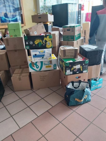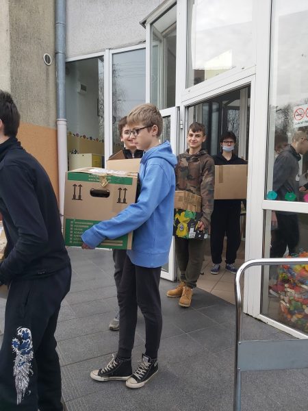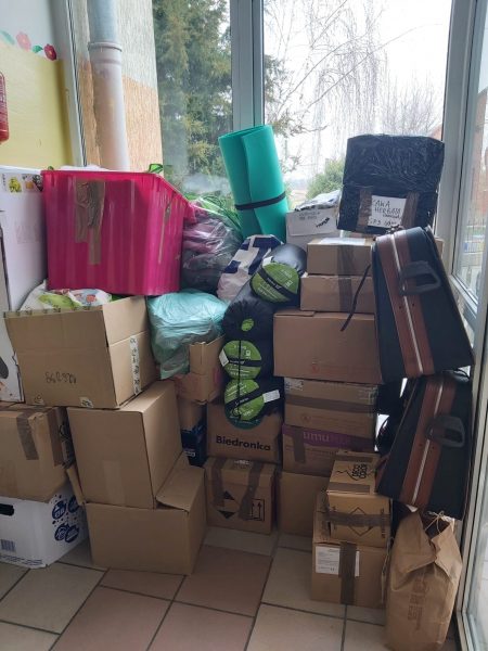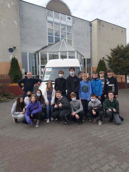 Wcześniej uczniowie Klasy ósmej z Witoszyc bardzo dzielnie pomogli w załadunku. 18 marca 2022r. nasi wolontariusze w godzinach wieczornych udali się do Wrocławia aby doładować do pełna busa. W magazynach zgromadzone są dary przekazane przez wielu ludzi dobrej woli. Po załadunku udaliśmy się w kierunku granicy. Około godziny 5 rano naszego czasu w błyskawicznym tempie przekroczyliśmy granicę w Medyce. Do Mościsk dotarliśmy bez żadnych przeszkód, w umówionym miejscu czekali na nas nasi ukraińscy koledzy z Trembowli. bardzo sprawnie dokonaliśmy przeładunku towaru, wymieniliśmy się informacjami dotyczącymi wzajemnej współpracy oraz sytuacji w jakiej się znajdują.