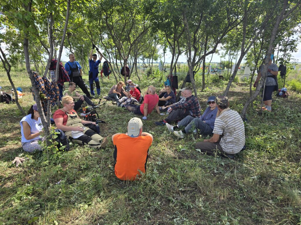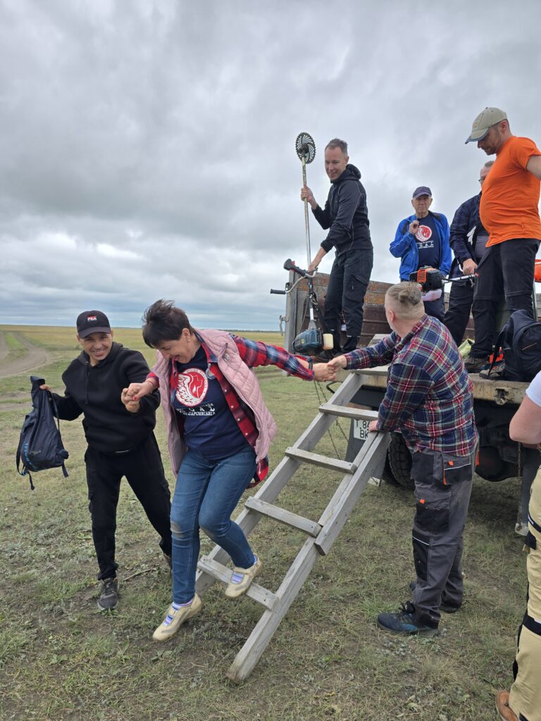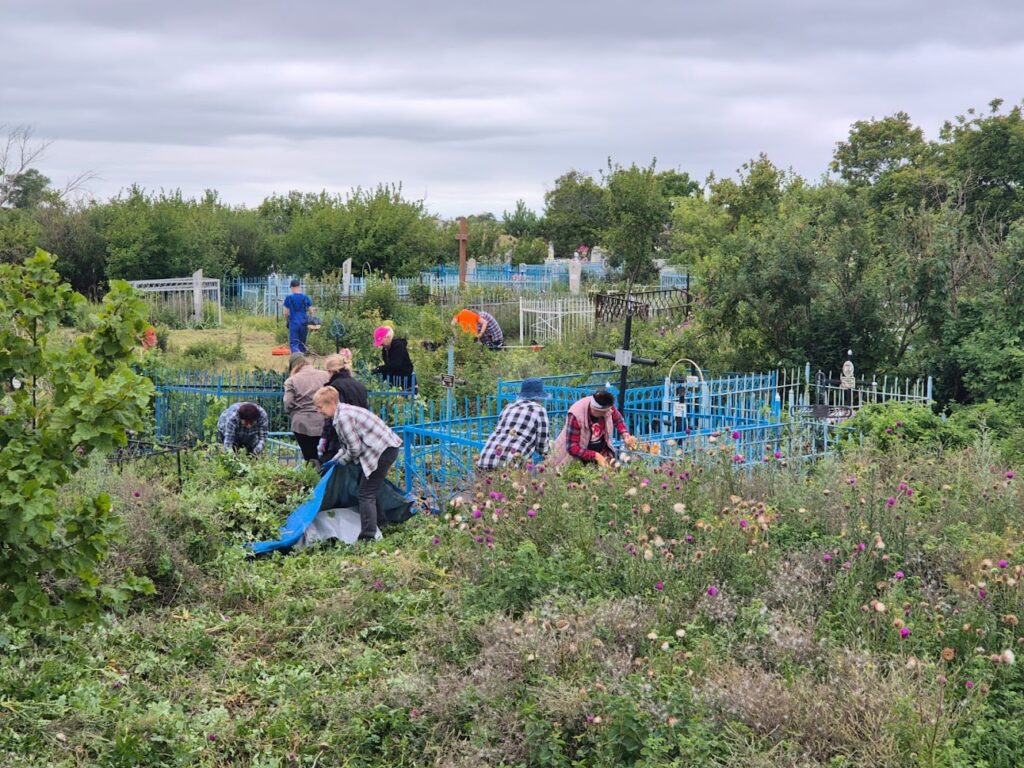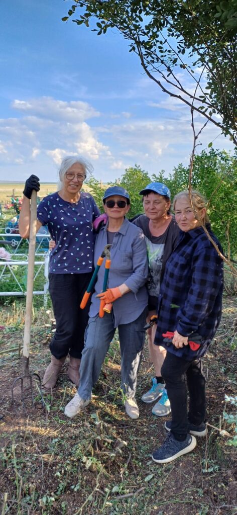 To kolejny przystanek naszej wolontariackiej wyprawy do Kazachstanu. W ubiegłym roku zaskoczyła nas aktywność społeczności tej niewielkiej wsi, gdy wielu mieszkańców o polskich korzeniach przybyło, by razem z nami porządkować miejscowy cmentarz, założony jak inne w 1936 roku. Podobnie było w tym roku. Kilkanaście osób ze Stepnoje stanęło z nami do pracy. Wspomagał nas ciężki sprzęt – traktory, ładowarki. Z satysfakcją zauważyliśmy, że mieszkańcy wyjątkowo dbają tu o wygląd swojej nekropolii. Sądzimy, że to my zainspirowaliśmy ich do tego… Tak więc kolejny „nasz” cmentarz odzyskał godny wygląd. W miejscowym domu kultury zostaliśmy poczęstowani obiadem. Bardzo nam smakowały potrawy przygotowane przez tutejsze gospodynie.
