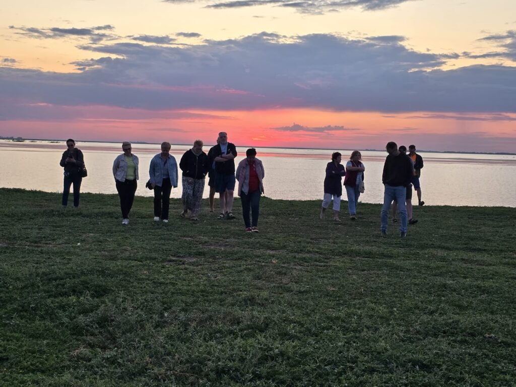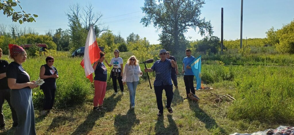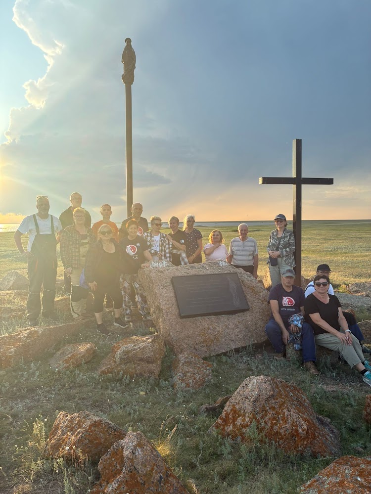Miejsce to pojawiło się po raz pierwszy na naszej trasie. Wieś niegdyś ludna z dużą szkołą, dziś jest niemal opuszczona. Jedni mieszkańcy przeprowadzili się do miasta w poszukiwaniu lepszego życia, inni wyjechali za granicę, również do Polski. Wielu zostało na zawsze na kazachskiej ziemi i spoczęło na miejscowym cmentarzu, stanowiącym trwały ślad życia na wygnaniu. Ich potomkowie dbają o to miejsce, co było dla nas sporym zaskoczeniem. Oczekiwali na nasz przyjazd i wspólnie uporządkowaliśmy niektóre mogiły. Miłym akcentem w Krasnodolsku było spotkanie z mieszkańcami obecnymi i dawnymi, którzy akurat wtedy odwiedzili swoje rodzinne strony. Po pracy państwo Swietłana i Gienadij przygotowali dla nas biesiadę na stepie. Okazali się ludźmi wesołymi, przyjaznymi, dumnymi z polskich korzeni. Część z nas wracała samochodem do Oziornoje z Panem Anatolem. Przecieraliśmy nowe drogi ładą, autem „z historią”. Mijaliśmy stada pasących się koni. To widok typowy dla kazachskiego stepu, a dla nas niezmiennie zachwycający. Podziwialiśmy niebo łączące się z ziemią, tworząc poczucie ogromnej przestrzeni. Określenie, że Kazachstan to „kraj wielkiego nieba” jest jak najbardziej adekwatne do rzeczywistości, jaką obserwowaliśmy i przeżyliśmy. Zachody słońca w Kazachstanie są chyba najpiękniejsze na świecie. Na chwilę zatrzymaliśmy się nad jeziorem powstałym w czasach wielkiego głodu To polscy zesłańcy wymodlili cud 25 marca 1941 roku. Niepodziewanie w wodzie pojawiły ryby. Uratowały od śmierci głodowej tysiące ludzi. Ludzie do dziś opowiadają z wielkim szacunkiem o tym wydarzeniu…