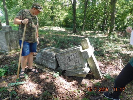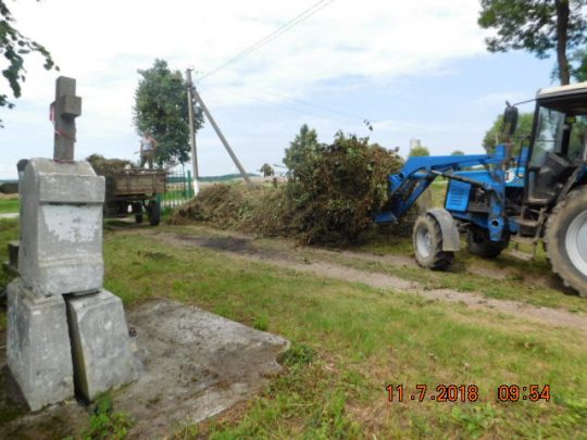 W ostatni dzień prac (11.07.) na cmentarzu snitkowskim, pomimo przelotnego deszczu, dokończyliśmy wycinanie zarośli. Hałdy zgrabionych gałęzi i zielska zostały wywiezione przyczepą poza teren cmentarza z pomocą miejscowych pracowników i ich sprzętu. Wreszcie groby naszych przodków widoczne były z drogi przebiegającej przy cmentarzu. W tym dniu naszym wolontariuszom udało się również naprawić powalony na ziemię pomnik, choć początkowo wydawało się to niemożliwe.