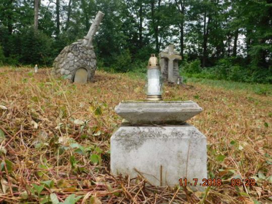 W sobotę (7.07.) wraz z księdzem Walerym Dobrowolskim z Murowanych Kuryłowic udaliśmy się na polski cmentarz, choć trudno nazwać to, co tam ujrzeliśmy, cmentarzem. Na miejscu zastał nas las krzewów i drzew rosnących na stromej skarpie, na końcu której rozpościerała się wielka polana. Od drogi dojazdowej udało nam się w tym gąszczu dojrzeć dwa drewniane krzyże. Zapuszczając się w gęstwinę zielonych krzewów i drzew, z trudem można było odszukać groby Polaków, lub to, co po nich zostało. Pomimo burzy i deszczu próbowaliśmy dotrzeć do pojawiających się w dużych odległościach nagrobków, aby móc je sfotografować. Nie do każdego pomnika był bezpośredni dostęp, dlatego zdjęcia robiliśmy z oddali. Pomniki, które widzieliśmy z bliska, miały albo fragmentaryczne napisy, lub były one całkowicie nieczytelne, albo były to pomniki bez żadnych danych umożliwiających identyfikację pochowanej osoby. Tego dnia po południu kontynuowaliśmy prace na cmentarzu w Snitkowie.