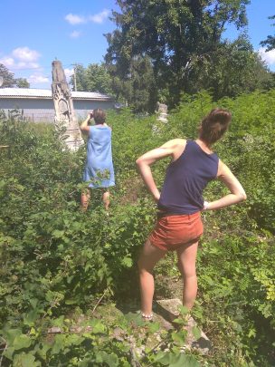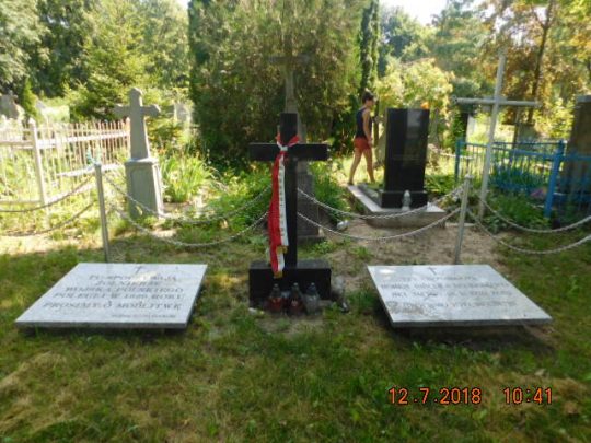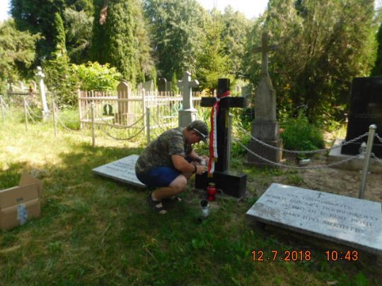 Na dzień przed wyjazdem z Ukrainy (czwartek 12.07.) zaplanowaliśmy pobyt na cmentarzu w Nowej Uszycy. Mieliśmy tam skatalogować polskie groby, co okazało się również bardzo trudne. Część terenu była co prawda oczyszczona przez poprzednią ekipę i do pierwszych grobów można było dotrzeć bez trudu, ponieważ były one przy głównej ścieżce. Znajdował się tu Pomnik Żołnierzy Wojska Polskiego poległych w 1920 roku oraz Dąb Pamięci poświęcony mieszkańcowi Nowej Uszycy – Janowi Malczewskiemu, który został zamordowany w 1940 roku w Katyniu. Niestety, do kolejnych pomników lub ich pozostałości trzeba było przedzierać się przez zarośla, co utrudniał panujący upał, kłujące akacje, pokrzywy i wysokie krzewy. Na wielu nagrobkach trudno było odczytać napisy, choć były i takie, z których można było wywnioskować, że pochowane są tam całe rodziny np. Wolskich, Szczepkowskich, Zdanowskich. Na tym cmentarzu, podobnie jak na innych, trzeba jeszcze wiele prac, aby odsłonić skryte w gąszczach i zapomniane mogiły oraz poznać ich tajemnice.