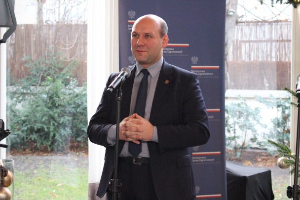 Uroczyste wydarzenie miało miejsce w Villi Foksal. W trakcie spotkania wigilijnego byli obecni Polacy praktycznie ze wszystkich zakątków świata łącznie 150 gości. My jako Fundacja Studio Wschód oraz akcja „Mogiłę pradziada ocal od zapomnienia” reprezentowaliśmy zarówno kresową wspólnotę i nasze działania na Ukrainie. Jak i Dolny Śląsk ten piastowski jak i pamiętający o swym wschodnim- kresowym rodowodzie. Nasz udział w spotkaniu był możliwy dzięki gospodarz wydarzenia Dyrektor Departamentu Współpracy z Polakami i Polonią za granicą Ministerstwa Spraw Zagranicznych Iwonie Kozłowskiej, osoby dla nas szczególnie ważnej, która od wielu lat udziela nam nieocenionej pomocy, dzięki której możemy realizować działania na wschodzie na szeroką skalę.