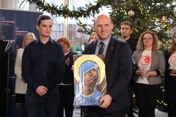 Jakie pozostałe walory mają nasze działania zaprezentowali wieloletni nasi wolontariusze Bożena – Sołek Muzyka oraz Artur Sułkowski, którzy przekazali ikony Matki Boskiej Żałobnej wykonane przez Sandrę Fidurską z Jugowa dla Dyrektor Departamentu Współpracy z Polonią i Polakami za Granicą Iwony Kozłowskiej oraz wiceministra MSZ Szymona Szynkowskiego Vel Sęk.