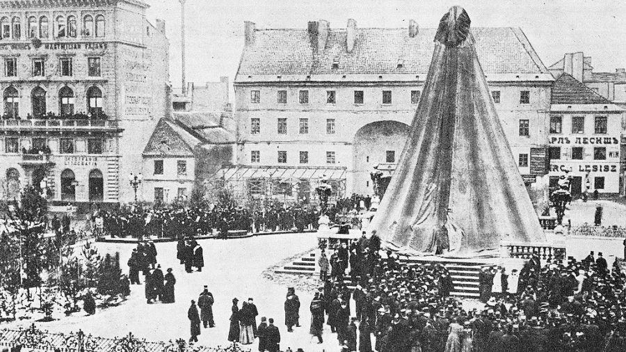 Dopiero w 1916 roku, podczas okupacji niemieckiej, nazwę skweru na którym stał pomnik zmieniono z Konstantynowskiego na Adama Mickiewicza. Po upadku powstania Warszawskiego Niemcy zdemontowali rzeźbę i wywieźli ją do Rzeszy, skąd rewindykować ją musiała polska misja wojskowa po wojnie.