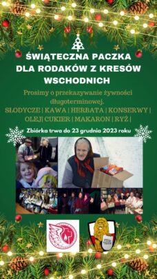 Od wielu lat organizujemy zbiórkę świątecznych darów dla Polaków mieszkających za wschodnią granicą. Zwracamy się po raz kolejny tradycyjnie – PODARUJCIE PACZKĘ NA KRESY. Będzie to nie tylko świąteczny upominek, ale również wyraz pamięci o tych , którzy pozostali na wschodzie. . Fundusze są potrzebne na pokrycie transportu i zakupu darów.
