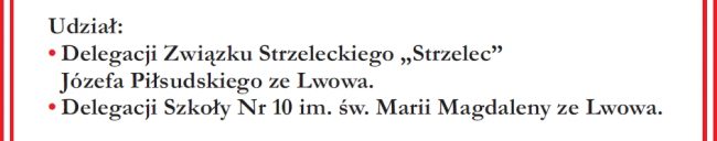 Udział w uroczystościach zapowiedzieli goście ze Wschodu: delegacja Związku Strzeleckiego „Strzelec” Józefa Piłsudskiego ze Lwowa oraz delegacja Szkoły nr 10 im. św. Marii Magdaleny ze Lwowa. Organizatorzy zapraszają 20 maja o godz. 11.30 do Kościoła pw. Katarzyny Aleksandryjskiej w Jugowie.