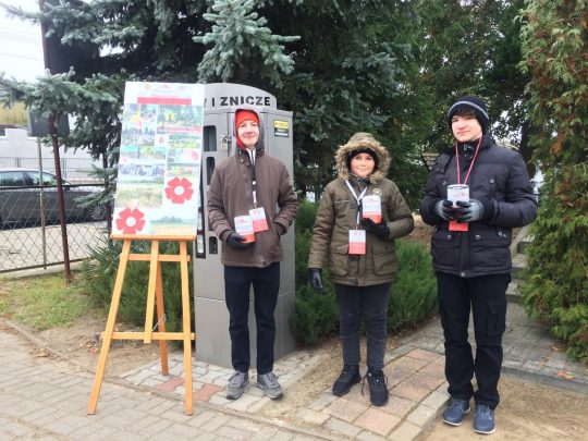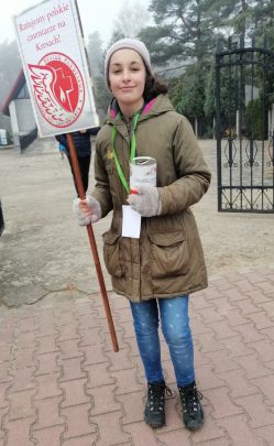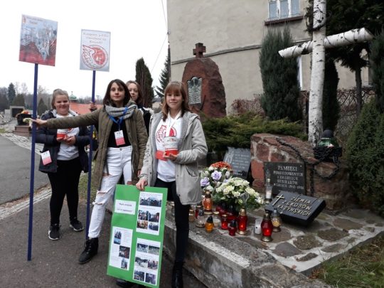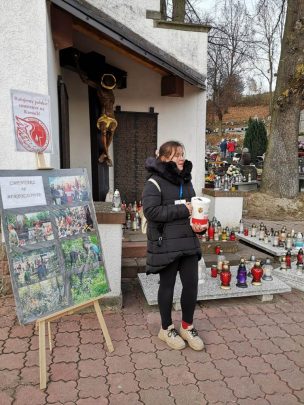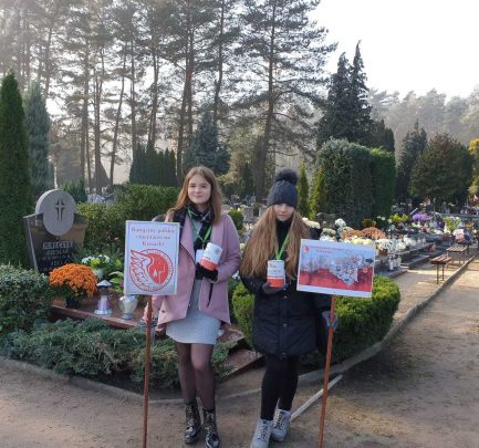 Od wielu lat dzień pierwszego listopada uważany jest za fenomen typowy dla Polski. Tylko my tak tłumnie odwiedzamy miejsca pochówku naszych przodków, pokonując setki kilometrów, nierzadko z zagranicy, aby nasze znicze rozjaśniały mroki listopadowych nocy. Tego dnia uczniowie Zespołu Szkół im. Powstańców Wielkopolskich 1918-1919 w Krzyżu Wielkopolskim po raz pierwszy przypomnieli tłumnie udającym się na cmentarze o mogiłach naszych pradziadów, pozostających na Kresach, często zapomnianych i zaniedbanych. Uczynili to uczestnicząc w kweście, która wspiera młodzież podejmującą w czasie wakacji trud ocalenia od zapomnienia tych zaniedbanych miejsc. Mimo dotkliwego zimna na Cmentarzu Komunalnym w Drezdenku kwestowali nasi uczniowie: Dawid Bartkowiak, Dawid Swaryczewski, Gracjan Kąkol i Kamil Michałek, wspierani duchowo przez przeziębioną tego dnia Zuzię Belczyk, która w czasie wakacji w gronie rówieśników z Wrocławia i Gdańska uczestniczyła w takiej akcji. Wrażenia z tego przedsięwzięcia pozostaną niezapomniane. Gracjan z pewnością nie zapomni panujących tego dnia niskich temperatur (na szczęście byliśmy przygotowani i uzbrojeni w … dodatkowe kurtki zimowe J). Wszyscy jednak doświadczyliśmy zaskakującej nas przychylności i niezwykłej ofiarności osób odwiedzających drezdenecką nekropolię. Przechodnie wrzucają do puszek zarówno kwoty pokaźne jak i przysłowiowy wdowi grosz, jednak nie o nominały tu chodzi. Wszystkich ofiarodawców cechuje bowiem niespotykana serdeczność. Ludzie w różnym wieku – i bardzo młodzi i bardzo sędziwi- chętnie podejmowali z nami rozmowę, dzieląc się swoimi doświadczeniami, zainteresowaniami i sympatią dla tej części Polski, która po wojnie pozostała za wschodnią granicą. Nie są zaskoczeni akcją, ponieważ poprzedziliśmy ją akcją informacyjną, wykorzystując m. in. przychylność proboszczów z pięciu sąsiednich parafii. W trakcie kwesty rozmawiamy z ofiarodawcami, żartujemy sobie, odnajdujemy nasze wspólne korzenie rodzinne i tworzymy gorącą atmosferę, tak potrzebną tego mroźnego dnia. Wśród rozmówców natykamy się na wielu naszych znajomych, aż wreszcie zjawiają się nasi koledzy ze szkoły, którzy chętnie przyłączają się do tej akcji choć symbolicznie. Ponieważ nie mają identyfikatorów, chcą przynajmniej potrzymać puszkę dla samej przyjemności. Gdy kończymy kwestę – z ulgą bo i zimno nas męczy i puszka … coraz cięższa – mamy świadomość, że uczyniliśmy jednak więcej, niż w latach minionych. Wówczas troszczyliśmy się tylko groby naszych bliskich, dziś poprzez tak szlachetną akcję, jak kwesta obejmujemy opieką bogate dziedzictwo Kresów.