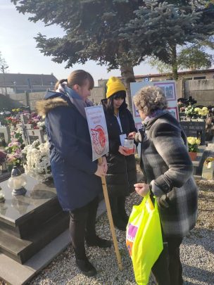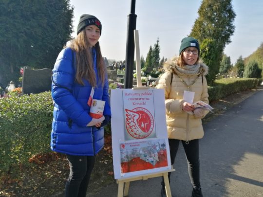 Do kwesty solidnie się przygotowaliśmy. Przed każdym wejściem cmentarza ustawiliśmy sztalugi ze zdjęciami z naszych wyjazdów na Kresy. Każde zdjęcie opatrzyliśmy logo akcji. Mieliśmy też drzewce z plakatami informującymi, jaki jest cel zbiórki. Chcieliśmy naszym darczyńcom pokazać efekty kilkuletniej pracy na kresowych cmentarzach w Zawadówce, Markowej oraz Toustobabach. Pomysł okazał się trafiony. Ludzie zatrzymywali się i rozmawiali z nami. Były też wzruszające momenty, bo okazało się, że niektórzy właśnie mają korzenie w miejscowościach, w których porządkujemy cmentarze. Łezka zakręciła się w oku zarówno ofiarodawcom, jak i wolontariuszom. Na zdjęciach szukali śladów miejsc, o których tyle słyszeli z ust swoich rodziców, czy bliskich (np. kościół w Markowej, groby bliskich). Wszystkim, którzy wsparli naszą akcję nie tylko finansowo, dobrym słowem, ale też w każdy inny sposób – bardzo serdecznie dziękujemy.