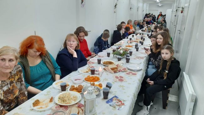 Z tego powodu postanowiliśmy podarować tamtejszym ofiarom wojny namiastkę normalności organizując wigilię dla mieszkańców kontenerów. W ten sposób choć na krótką chwilę mieszkańcy Makarowa mogli na chwilę zapomnieć o wojennej zawierusze, która się w dalszym ciągu nie zakończyła, trwają zacięte walki na wschodzie kraju a same miasteczka położone wokół Kijowa są regularnie ostrzeliwane poprzez wojska rakietowe najeźdźcy.