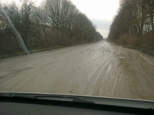 Po przekroczeniu granicy konwój rozdzielił się: jedna grupa pojechała do Mościsk, druga – daleko na Podole, a nasza ekipa udała się do Podhajec w obwodzie tarnopolskim. Podróż była pouczająca dla młodych wolontariuszy, którzy poznali bardzo zróżnicowany stan lokalnych dróg ukraińskich (zwłaszcza na odcinku Stryj – Drohobycz). Na rynku w Podhajcach stanęliśmy w południe.