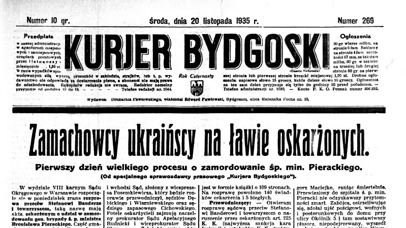 87 lat temu, 18 listopada 1935 roku, przed warszawskim sądem okręgowym rozpoczął się proces członków OUN oskarżonych o zaplanowanie zamachu na ministra spraw wewnętrznych Bronisława Pierackiego, który miał miejsce w czerwcu 1934 roku.
