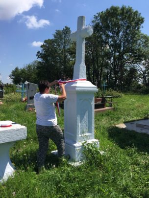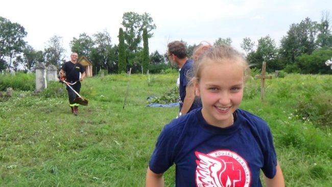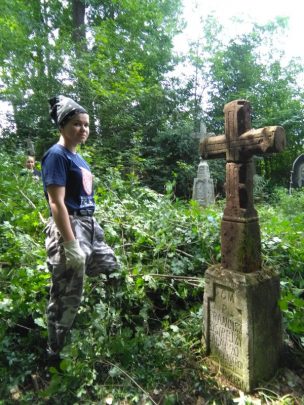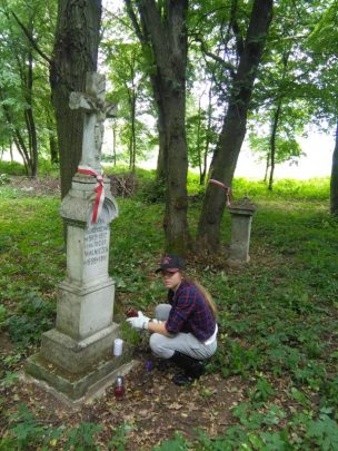 W tym roku po raz pierwszy pojechałam do Ukrainy. Dlaczego Ukraina?. Tam żyje dusza Polski! Kiedy sprzątaliśmy cmentarze, zrozumiałam, że każdy grób kryje historię jakiegoś człowieka. Kiedy mogłam oczyścić pomniki i, choć nie zawsze było to możliwe, odczytać imię, nazwisko, obliczyć wiek tej osoby… Zastanawiałam się, kim ten ktoś był, czy miał rodzinę, kto te 100, czy nawet 200 lat temu stał na moim miejscu i go opłakiwał. Mogłam się za niego pomodlić oraz poprosić o modlitwę w mojej intencji. Pewnego dnia, na jednym z cmentarzy starsza pani zaprowadziła mnie do alejki, na której znalazłam duży, biały grób z pięknym wizerunkiem Zbawiciela. Na początku nie mogłam odczytać nic. Gdy zdarłam mech, dowiedziałam się, że to było malutkie dziecko. W pierwszej chwili pomyślałam: przecież jemu to już niepotrzebne, w Niebie jest najszczęśliwsze! Jednak w drugiej chwili przyszła myśl, że robię to dla jego matki. Jestem pewna, że sama chciałaby odnowić napis, wyrwać chwasty, doprowadzić nagrobek swojej pociechy do porządku, ale już nie może, dlatego robię to za nią. Wiem, że będzie mi wdzięczna za moje poparzone pokrzywami ręce, spodnie pomalowane złotą farbą, dłonie podrapane kolcami. To piękne, że mamy możliwość ocalić od zapomnienia te nagrobki. Robimy tyle, ile możemy, bo na świecie jest BARDZO wiele ludzi BARDZO nieważnych dla świata, którym nigdy nie odmalujemy imienia na pomniku, bo nigdy imienia nie będą mieli, umrą po cichu, nikomu nie przeszkadzając…