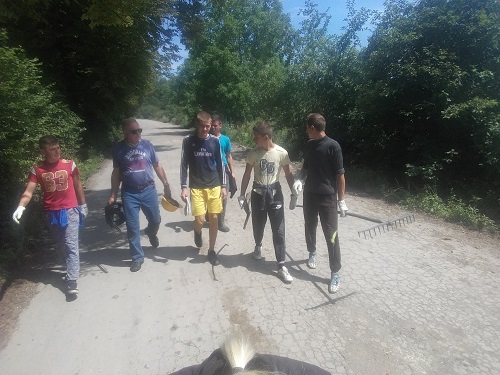 Następnego dnia już od samego rana pełni sił i zapału ruszyliśmy do pracy. Towarzyszyła nam ukraińska młodzież, która chętnie użyczała nam swoich sprzętów, tj. grabi, motyk czy furmanki z zaprzęgiem, którą ostatniego dnia wywieźliśmy wycięte trawy, chwasty i gałęzie.