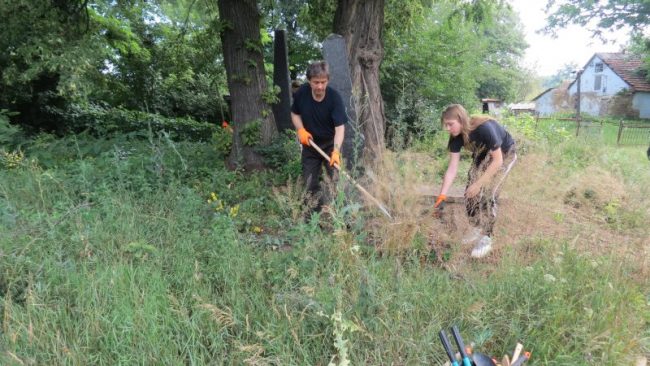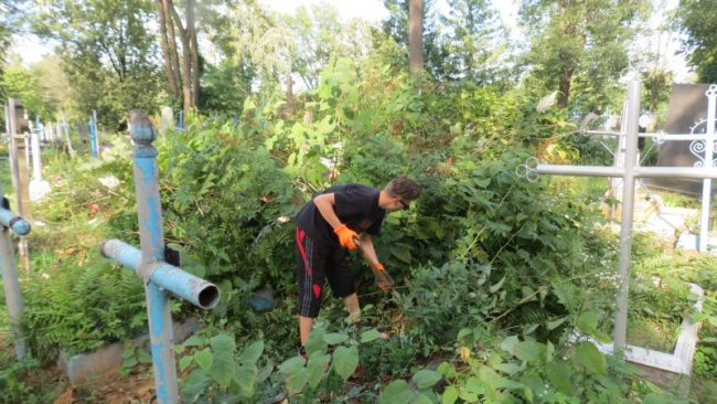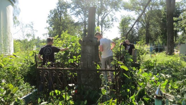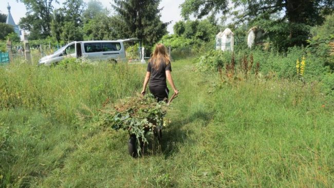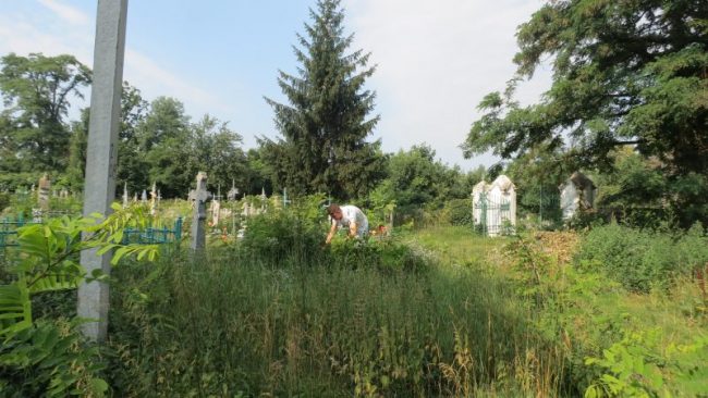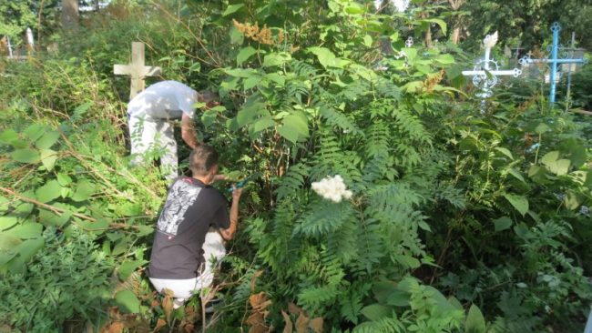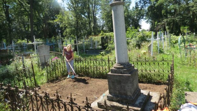 Zostały wykonane na nim następujące prace: czyszczenie i renowacja nagrobków, odkopywanie pomników zasypanych ziemią, odchwaszczanie terenu wokół grobów, karczowanie otoczenia z dziko rosnących krzewów i drzew samosiejek. Powyższe prace dotyczyły nowych grobów oraz tych, którymi zajmowaliśmy się w ubiegłym roku. Nadmieniam, że prace te są kontynuowane corocznie, gdyż nikt w trakcie naszej nieobecności nie zajmował się pielęgnacją cmentarza.