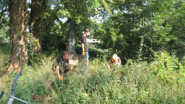 Grupa uczniów z Zespołu Szkół Budowlanych z Legnicy pod opieką profesora Jerzego Serko po raz trzeci uczestniczyła w pracach porządkowych w Latyczowie.